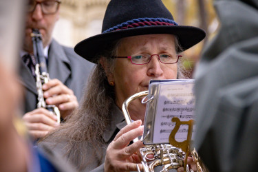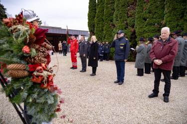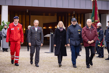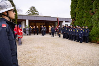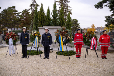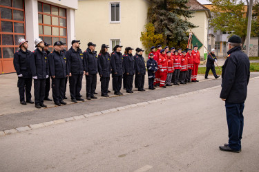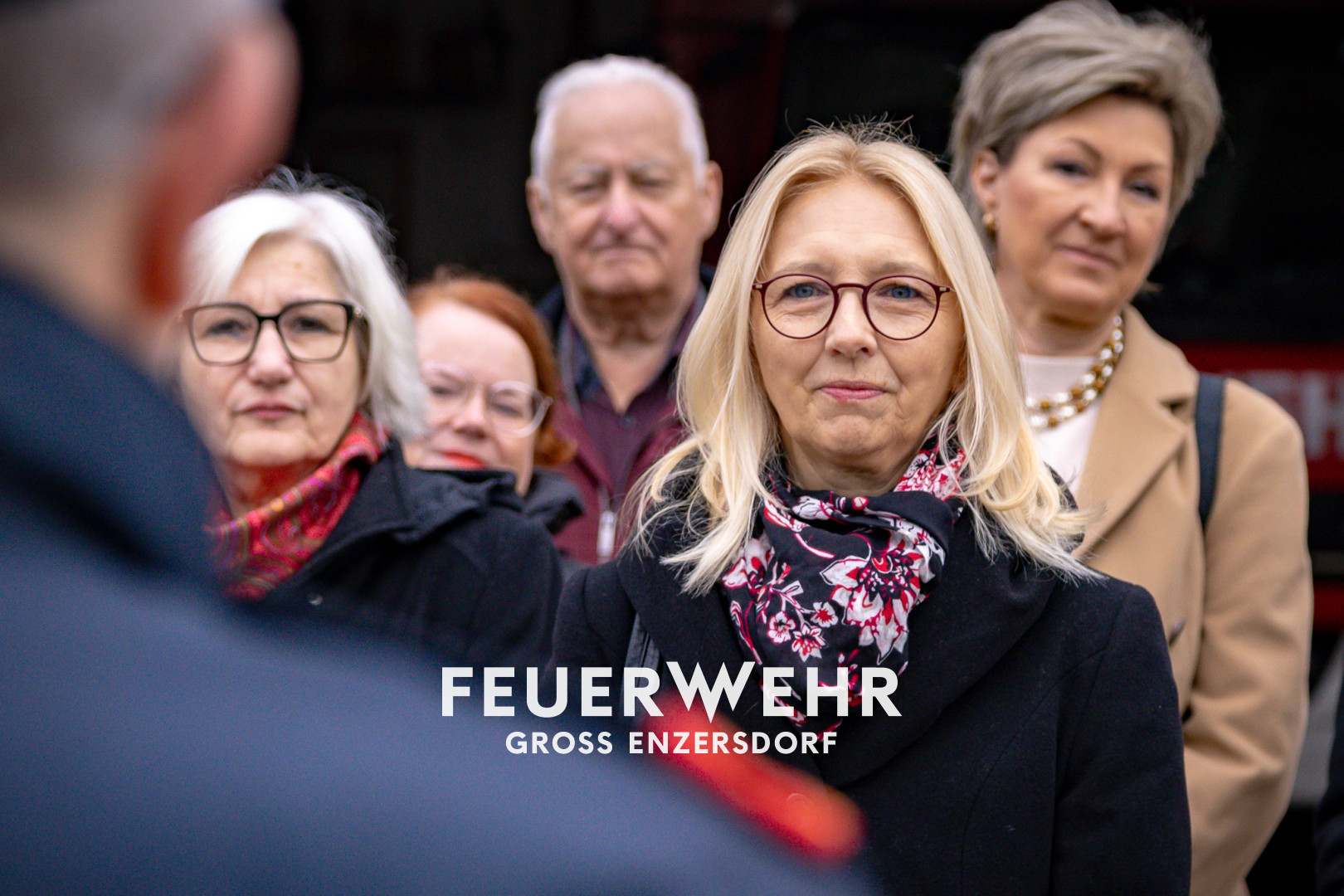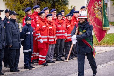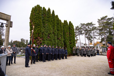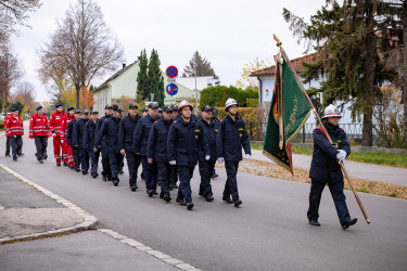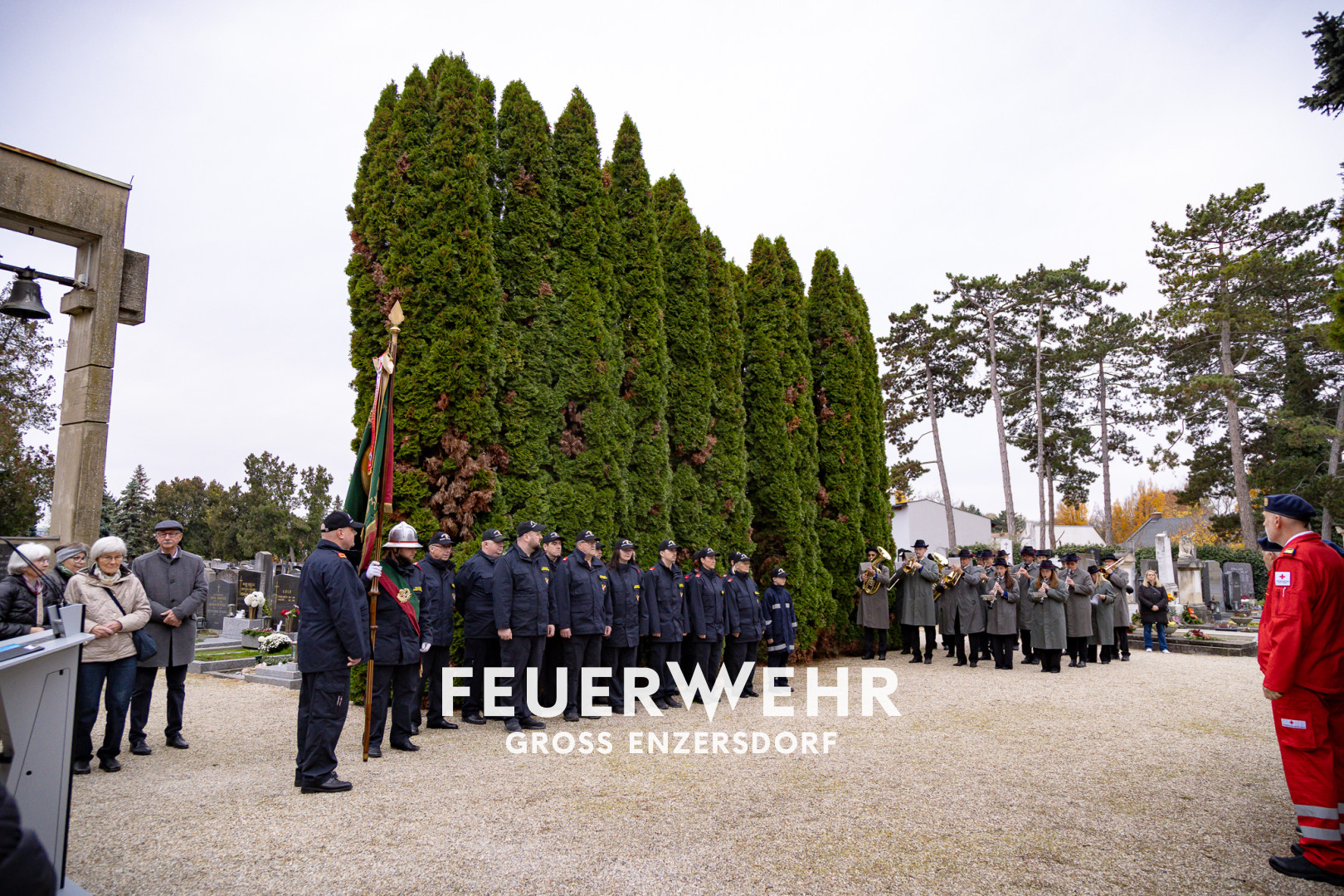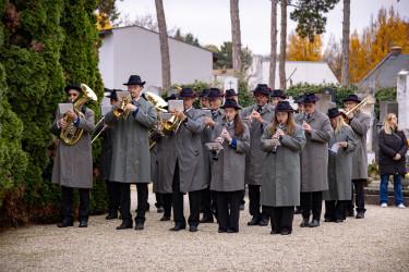 Von dort aus marschierte der Zug gemeinsam zum Friedhof Groß-Enzersdorf. Am Friedhof wurden wir von der Ortsmusik Franzensdorf musikalisch begleitet. Nach den Ansprachen von Frau Bürgermeisterin, Dipl.-Päd. Monika Obereigner-Sivec und Stadtpfarrer sowie Feuerwehrkurat Dr. Arkadiusz Borowski wurden die Kränze niedergelegt und den Verstorbenen gedacht.
