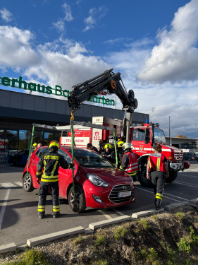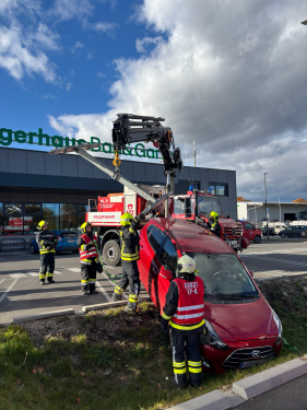 Da das Fahrzeug in einer ungünstigen Position im Graben zum Stillstand gekommen war, wurde zur Bergung der Kran der Feuerwehr Rutzendorf nachalarmiert. Mit dessen Unterstützung konnte das Auto rasch und professionell geborgen werden.