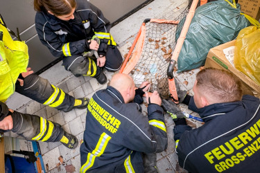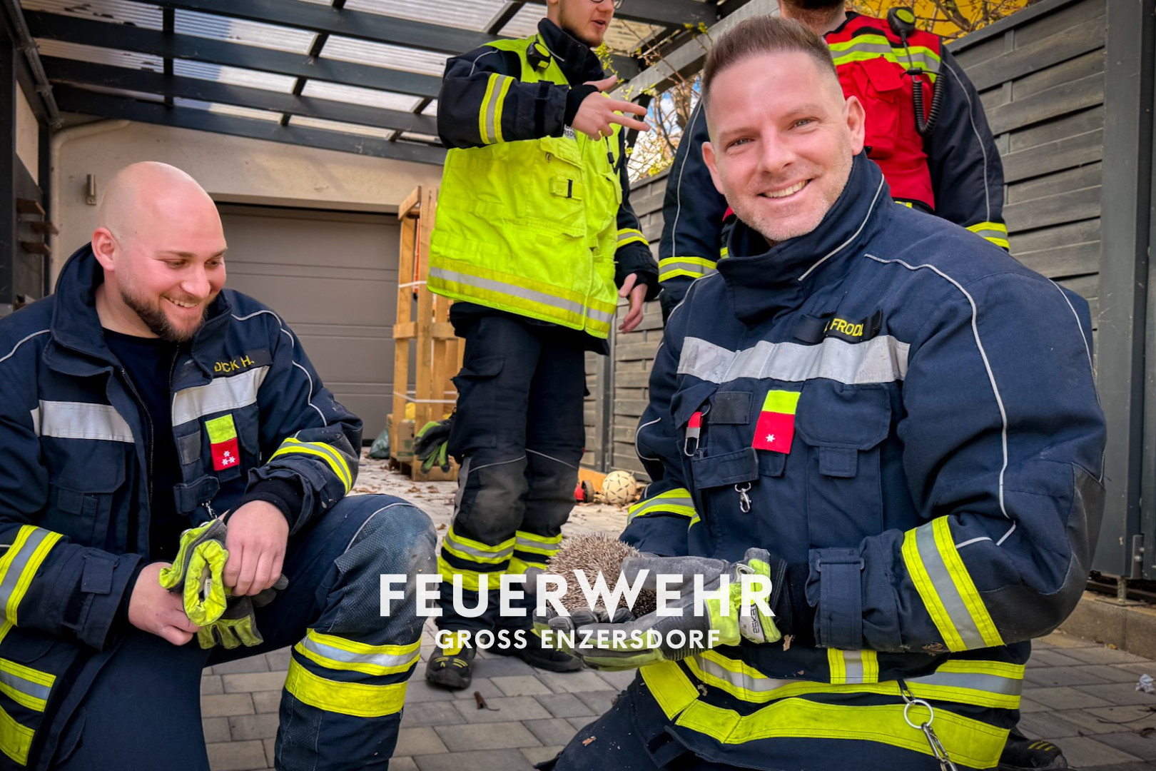 Mit dem Einsatzstichwort „Igel hängt in Netz fest“ wurden wir zu einem Carport alarmiert. Die meldende Person hatte dort ein Rascheln und Quietschen wahrgenommen und entdeckte einen Igel in einer misslichen Lage. Das vermutlich erst vor kurzem aus dem Winterschlaf erwachte und nach Futter suchende Tier hatte sich im Netz eines Mini-Fußballtors verfangen.