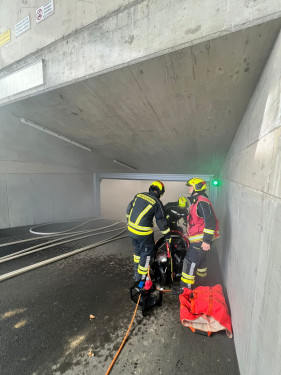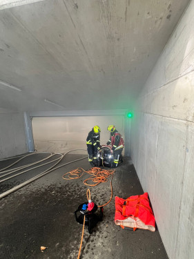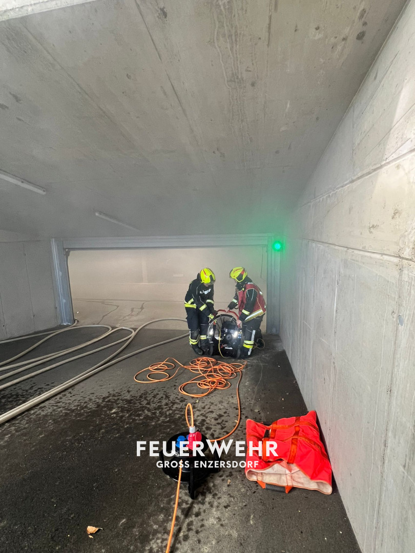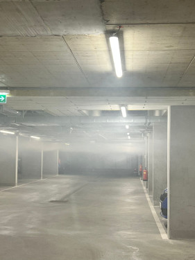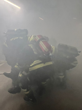 Außerdem galt es, zwei versteckte Gasflaschen zu entdecken und zu sichern. Zum Abschluss musste die Tiefgarage durch gezielte Druckbelüftung wieder rauchfrei gemacht werden.