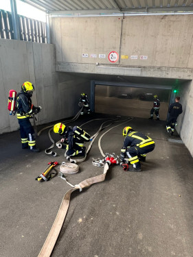 Dieses Mal stand eine gemeinsame Übung mit der Freiwilligen Feuerwehr Raasdorf auf dem Plan. Die Übungsannahme war ein Fahrzeugbrand in einer Tiefgarage, in der zwei Kinder vermisst wurden.