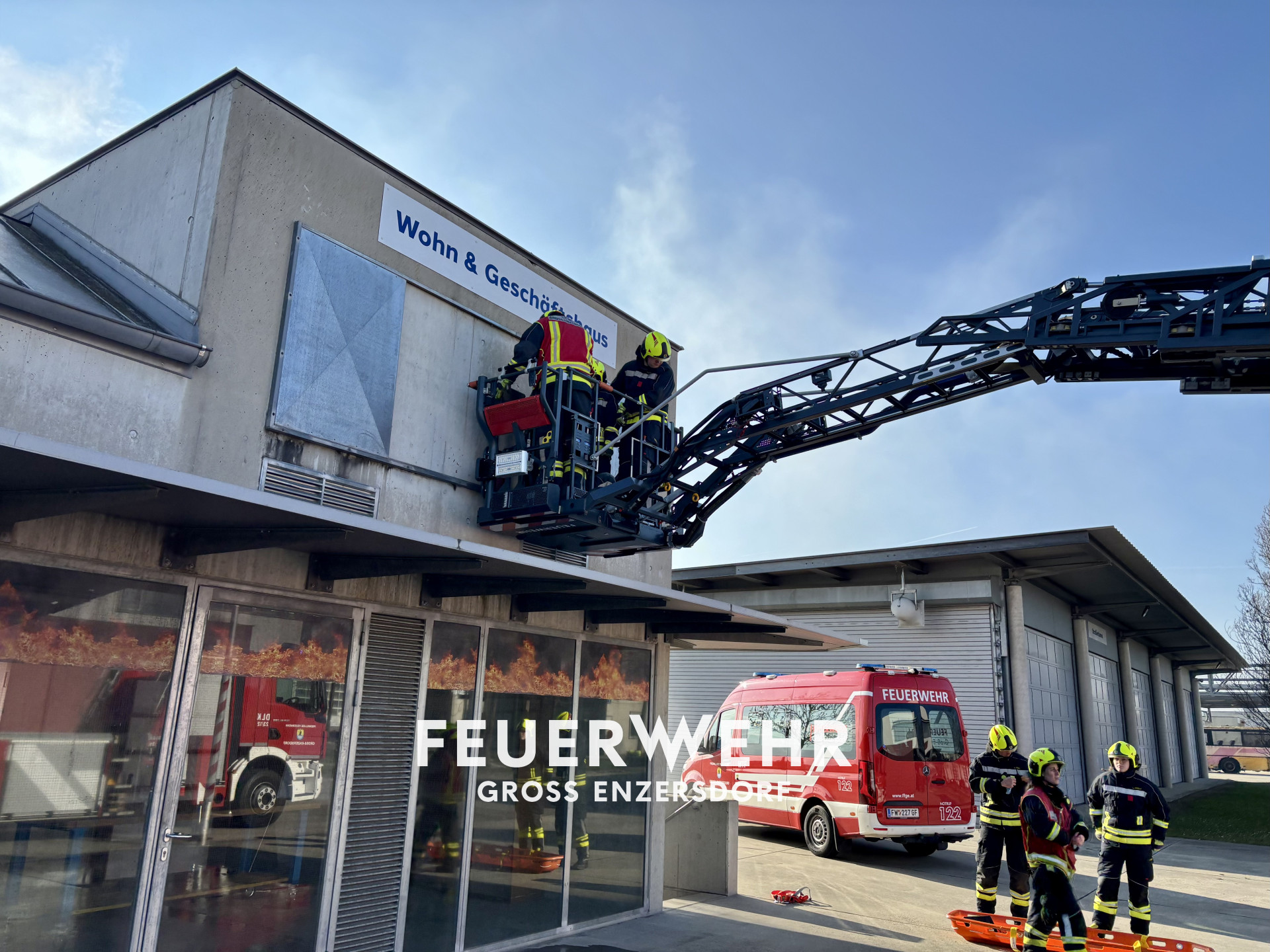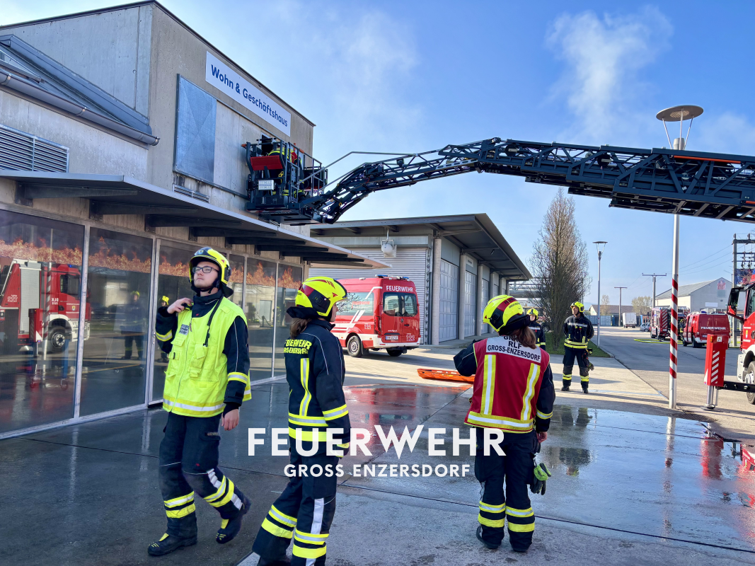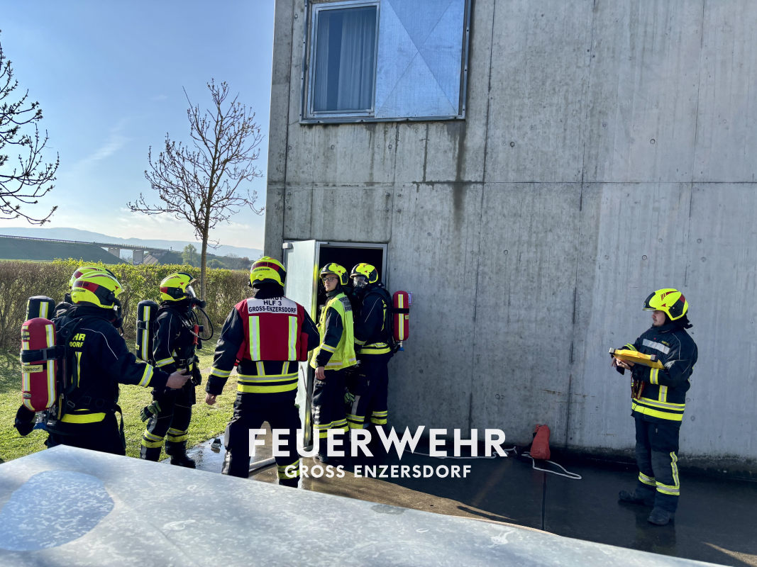 Am Vormittag starteten wir mit einer Großübung mit mehreren Löschfahrzeugen und der Drehleiter. Angenommen wurde ein Kellerbrand mit Menschenrettung sowie die Rettung einer mobilitätseingeschränkten Person aus dem 1. Obergeschoss. Dabei wurden unsere neuen Gruppenkommandant:innen, frischen Feuerwehrmitglieder und erfahrenen Atemschutzträger:innen gleichermaßen gefordert. Mittels Nebelmaschinen wurde das Szenario realitätsnahe beübt und wie auch im Einsatzfall zeigten sich unerwartete Wendungen.