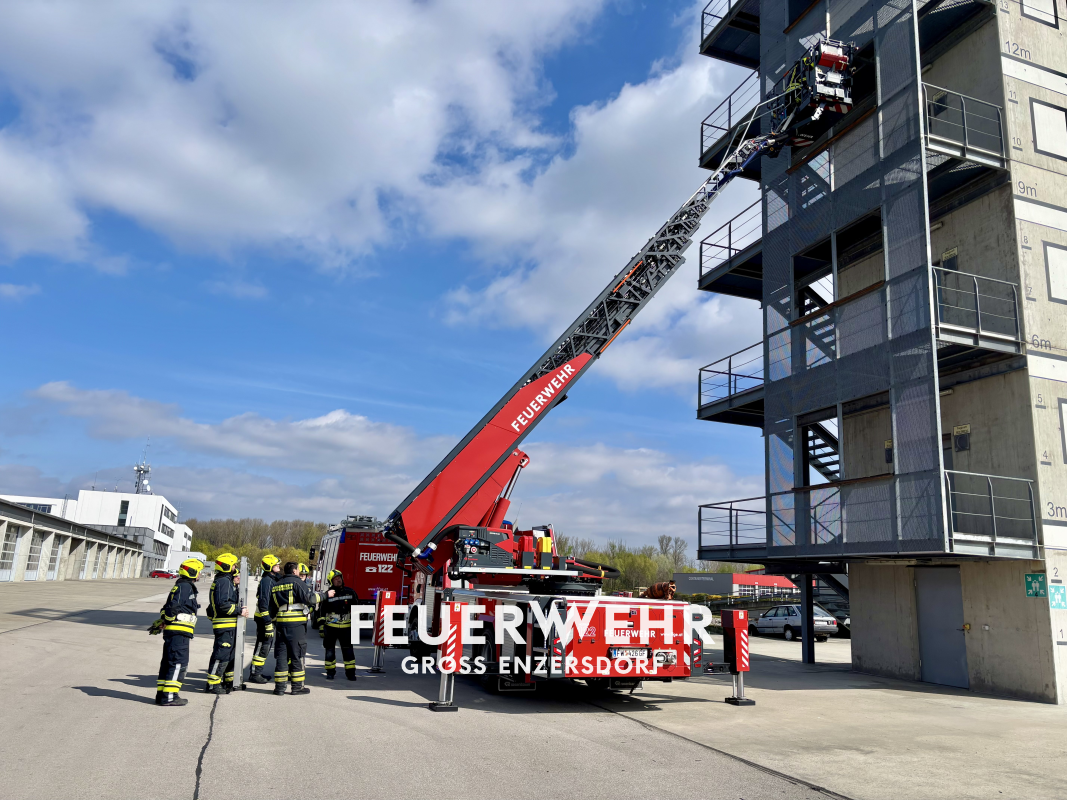Nach einer kurzen Pause erfolgte eine Aufteilung in zwei Gruppen. An der Übungstankstelle wurde ein Schadstoffszenario durchgespielt und auf die Gefahren bei Einsätzen hingewiesen. Des Weiterem wurde am Übungsturm das Erklimmen der Drehleiter sowie das sichere Anleitern an einem Fenster im 3. Obergeschoss und das Übersteigen in ein Gebäude trainiert.