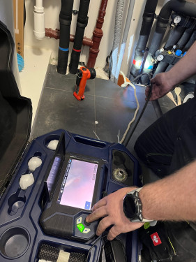 Das Rohr wurde vorsichtig freigelegt und geöffnet. Mit einer weichen Kehrbürste konnte der Welpe behutsam in Richtung Ausgang bewegt werden. Von dort konnten wir in Greifen und anschließend unversehrt aus dem Rohr befreien.