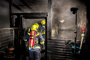Die ersten Maßnahmen konzentrierten sich auf die Eindämmung der Brandausbreitung. Diese wurden über den Garten mit zwei C-Rohre vorgenommen. Im Inneren des Objekts befand sich ein rund 600 Liter fassender Öltank, der laut Auskunft zu etwa drei Viertel gefüllt war. Dieser wurde umgehend gekühlt. Zusätzlich wurde auf der Rückseite über das Nachbargrundstück mit einem weiteren C-Rohr eine Brandbekämpfung durchgeführt.