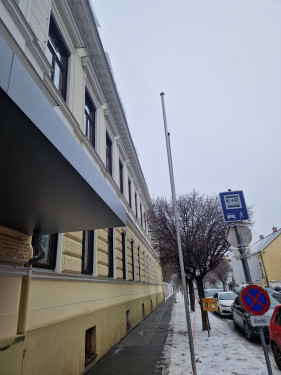 Durch die wetterbedingten, wechselnden Plus und Minusgrade bildeten sich entlang des Daches der Volksschule an mehreren Stellen vereiste Dachlawinen. Diese drohten auf den darunterliegenden Gehweg abzustürzen und stellten somit eine Gefahr für Passanten sowie Schülerinnen und Schüler dar. Um mögliche Verletzungen zu verhindern, wurden von uns die gefährlichen Eis und Schneemassen entfernt.