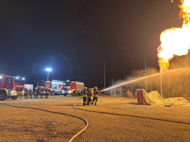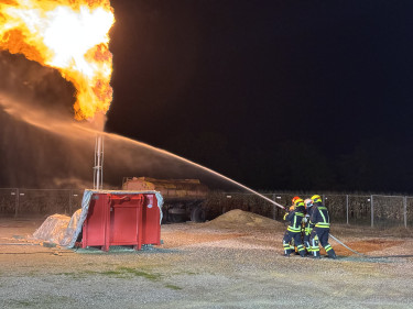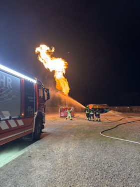 Gemeinsam mit den Kameradinnen und Kameraden der BTF OMV Gänserndorf beübten wir das Ablöschen einer Gasfackel sowie das unter Kontrolle bringen von brennenden Gasströmungen mittels Strahlrohren.